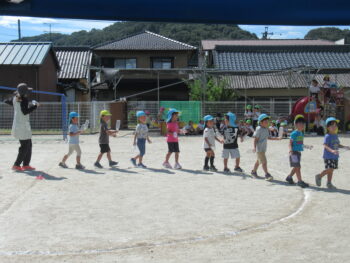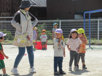 音響セットを園庭に出して運動会練習が始まりました