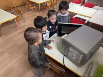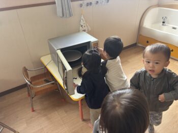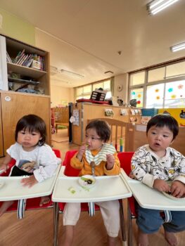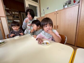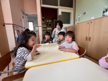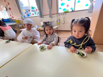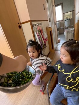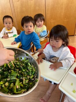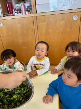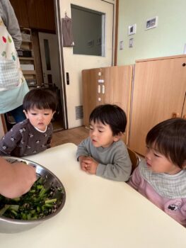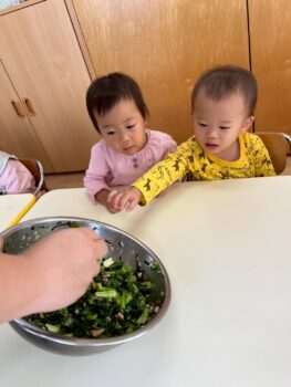 今日は静かに保育者が作り進める様子を集中して眺めていました。