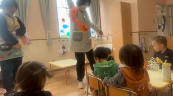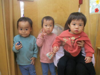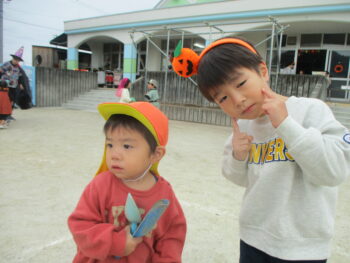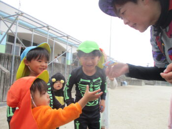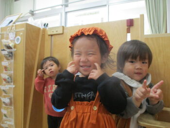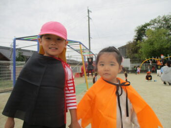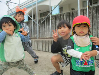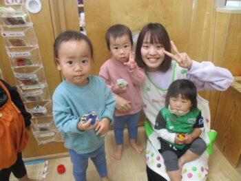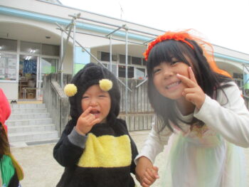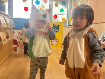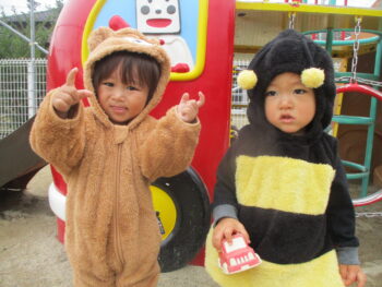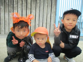 お外に出ると他のクラスのお友達がかわいい姿でお出迎えしてくれました!