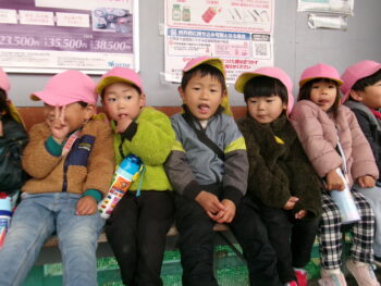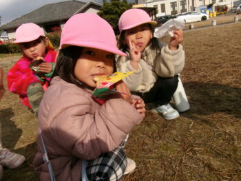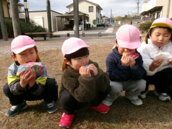 電車から降りて、おやつの「たい焼き」を買って公園で食べました