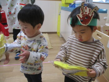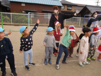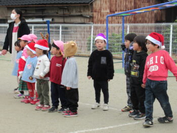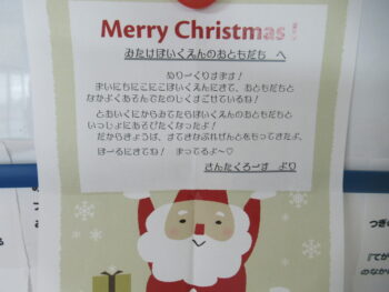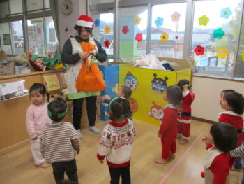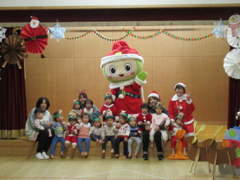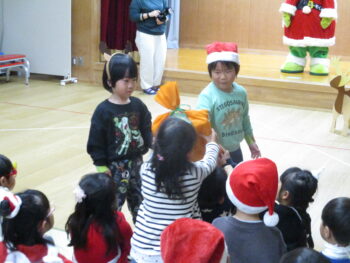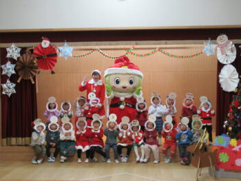 ホールでミーモサンタからプレゼントをもらったり楽しいクリスマス会でした