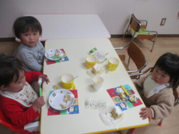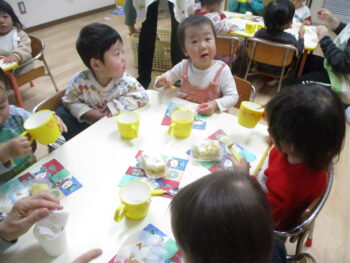 3時のおやつは、ケーキとジュースでした!
