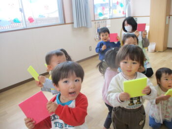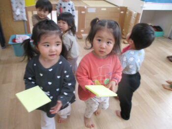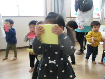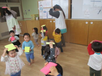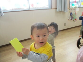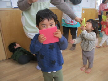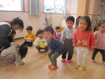 色々な道具を使い、リズムにのって楽しそうでした♪