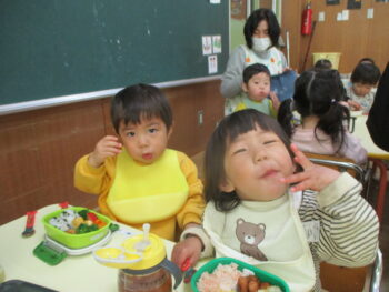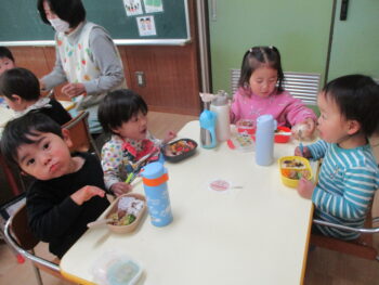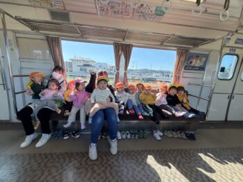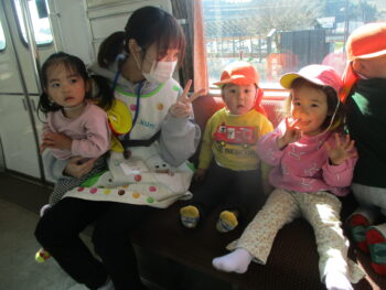 はじめての電車🚃たんぽぽぐみ 2026年3月9日 たんぽぽぐみが電車に乗りました。 みんな一生懸命 窓の外を眺めていました👀 みんなでハイチーズ📷⭐️ 帰り道はちょっと 寄り道。 れんげ組のお部屋でお弁当を食べました🍱 ご用意くださりありがとうございます😊