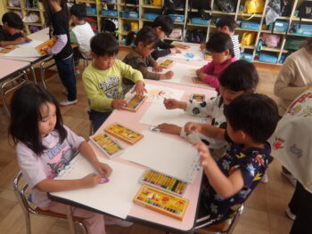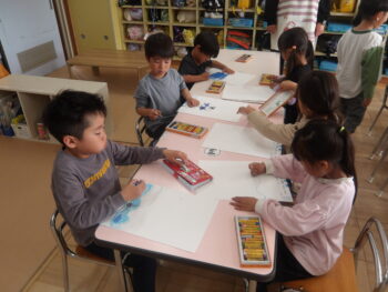 テーマは「自由」ということで、みんな自分で描きたいものを考えて描きました
